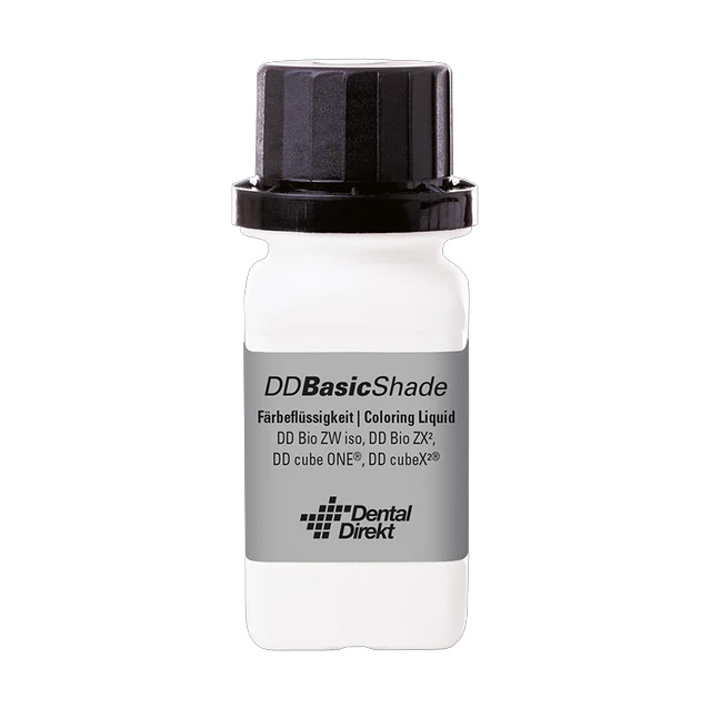 A DD Basic Shade univerzális színező folyadék minden nem előszínezett Dental Direkt cirkónia típushoz. A DD Basic Shade alkalmazása a szinterezési folyamat előtt történik.