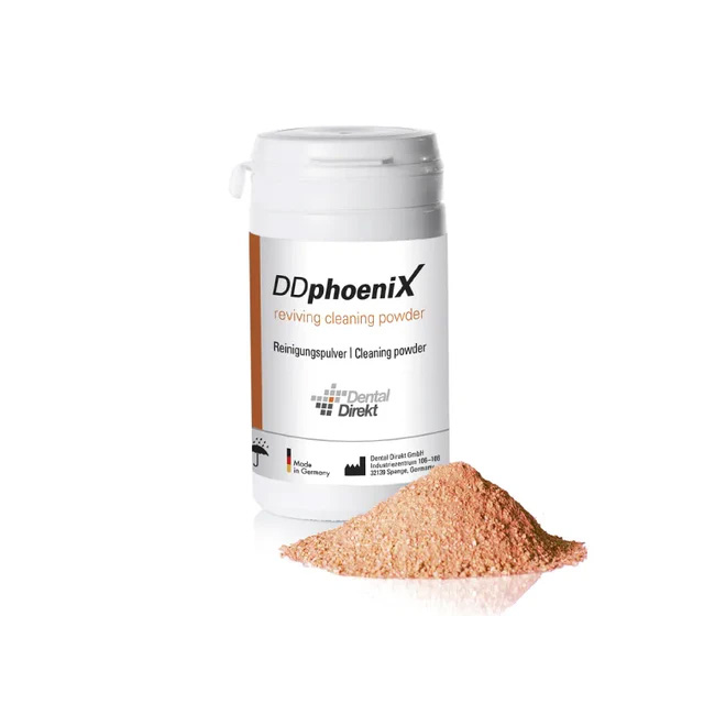 A laborfolyamat minden fontos szempontjának figyelembevétele ellenére is előfordulhat elszíneződés vagy szennyeződés a szinterezett munkákon. Ennek gyakori oka a fűtőelemekből származó oxidkiválás és azok lerakódása a kemencekamrában. Speciális szemcseméretének köszönhetően a DD phoeniX tisztítópor rendkívül reaktív felülettel rendelkezik, amely megköti és tartósan megköti az oxidokat a kemencében, így hatékonyan segíti a tisztítást.